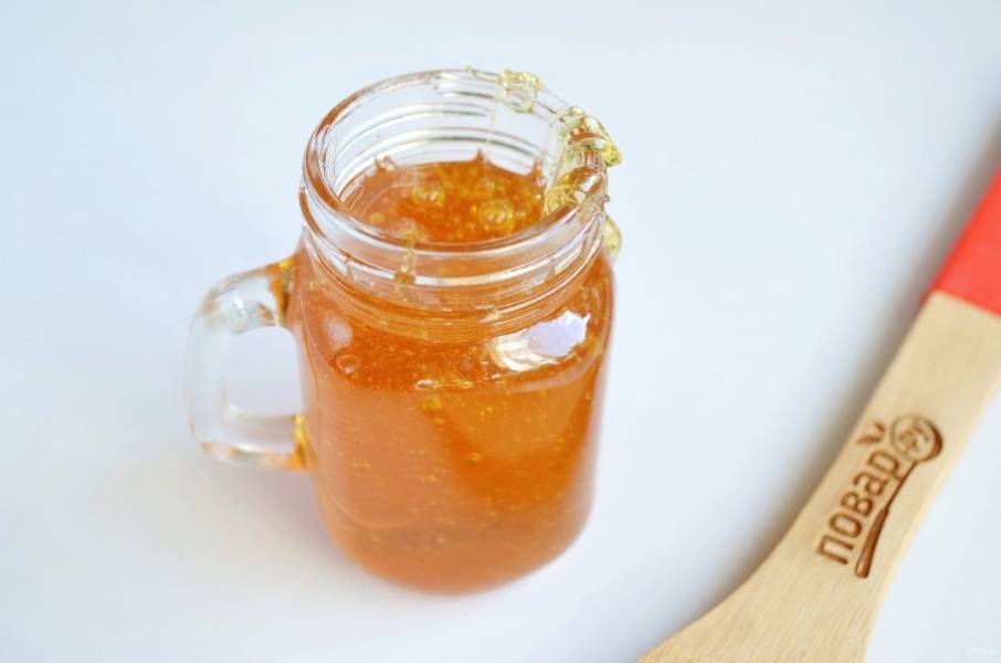 3. Готовый сироп по консистенции должен быть жидким, как мед. Цвет от светло-золотистого до янтарного. После остывания сироп станет заметно гуще, поэтому следите, не переварите!