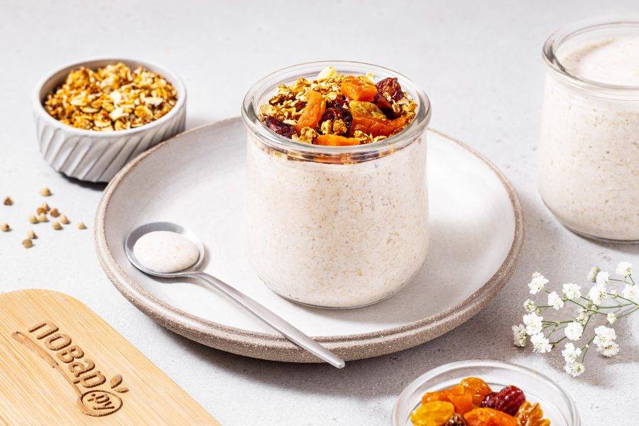 Йогурт из зеленой гречки готов. Подавать его можно с мюсли и сухофруктами. Приятного вам аппетита!