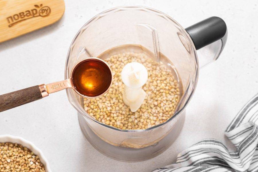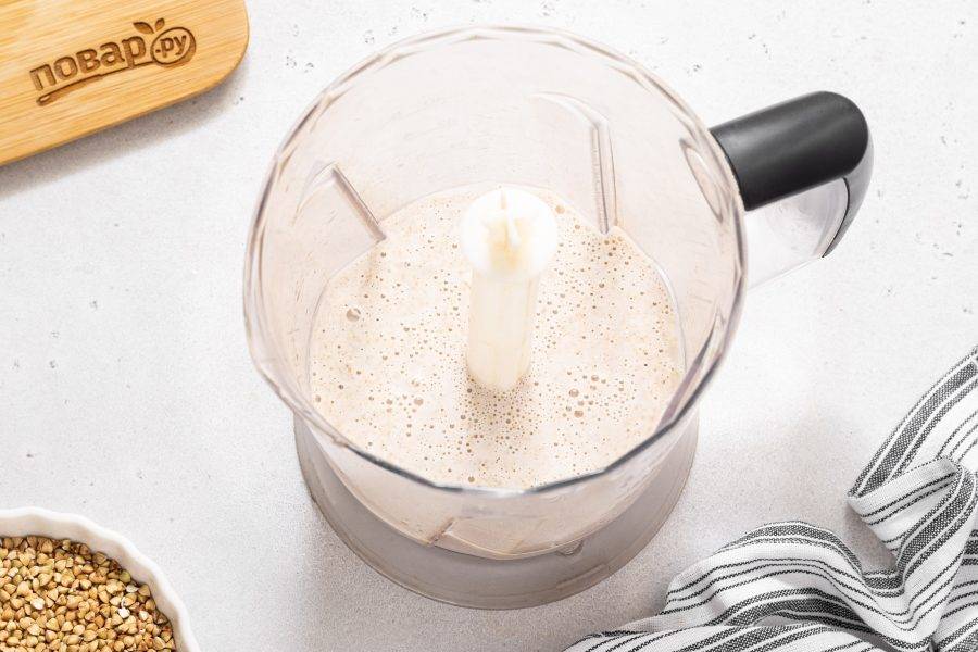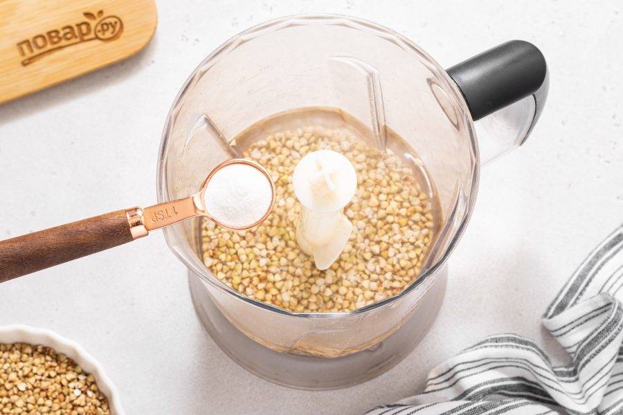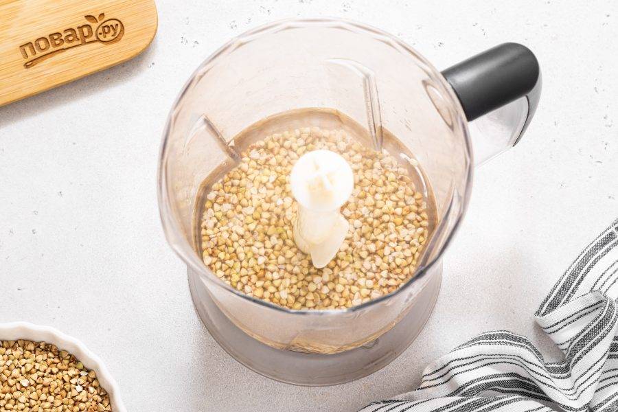 Переложите зеленую гречку в блендер, влейте чистую воду.