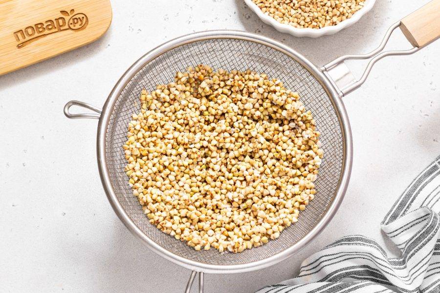 После тщательно промойте гречку, откиньте на сито и дайте стечь лишней воде.