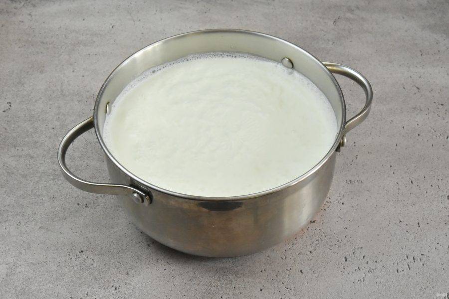 Если используете пастеризованное молоко, нагрейте его до состояния закипания, но не кипятите, это примерно 90 градусов. Как только молоко будет готово закипеть, снимите кастрюлю с огня. Если используете фермерское молоко, его необходимо прокипятить, но следите, чтобы оно не пригорело к стенкам и дну кастрюли. Кипячение уничтожит вредные микроорганизмы, которые попали в молоко. Дайте молоку остыть до температуры 38-40 градусов.