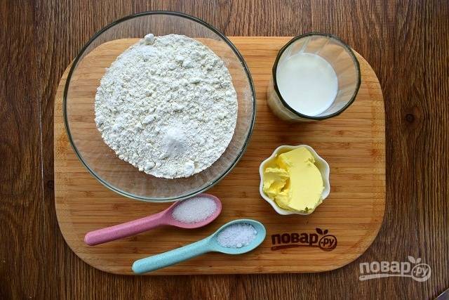 Подготовьте необходимые ингредиенты. Муку и разрыхлитель просейте в миску.