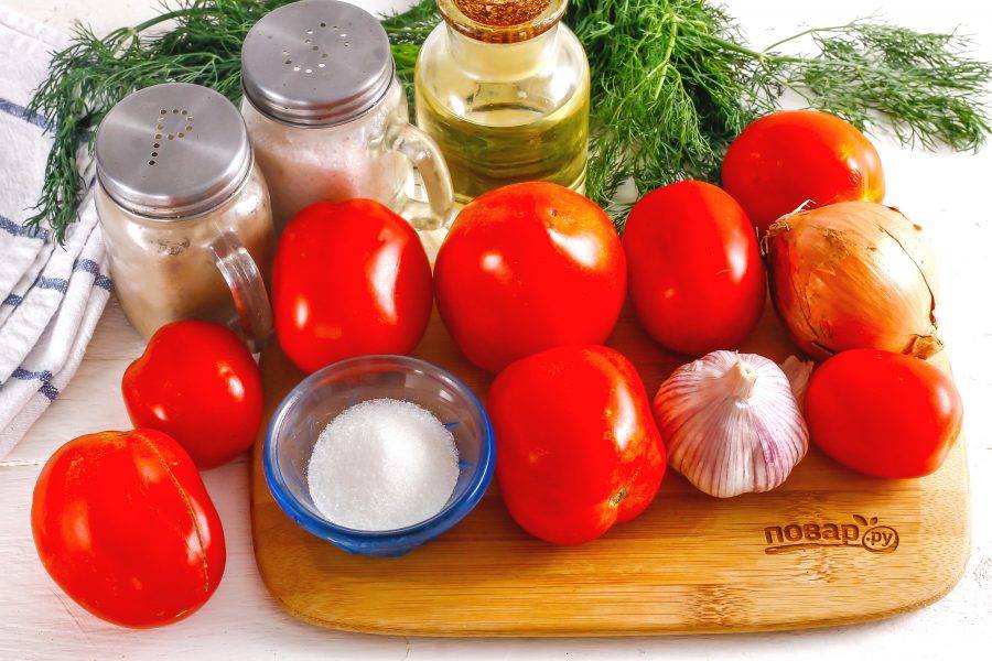 Помидоры опустите в кипяток на 5 минут, затем удалите кожуру и натрите их на терке с крупными ячейками.