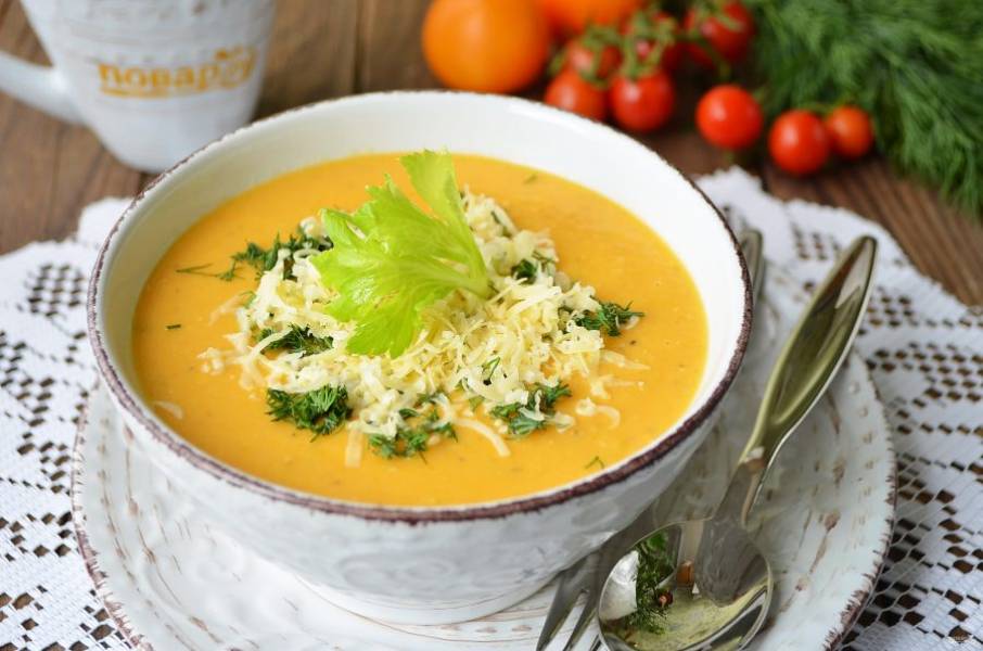 9. Подавайте суп с сыром и зеленью. Приятного!