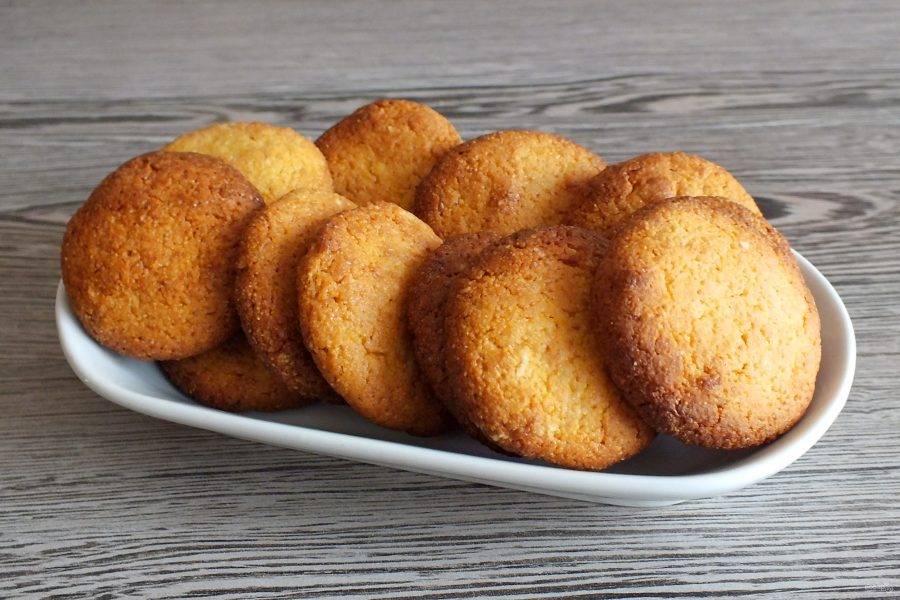 Переложите печенье в вазочку. Его можно подавать как тёплым, так и полностью охлажденным.