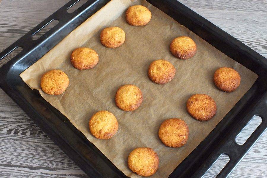 Через указанное время, достаньте противень с печеньем. Оно будет румяного цвета.