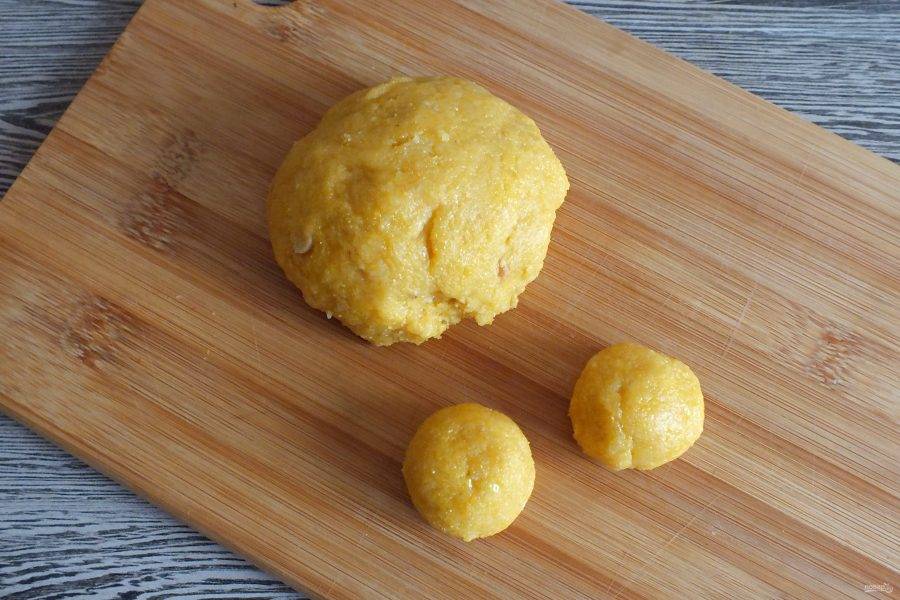 По истечении времени, поделите тесто на 12 частей. Средний вес заготовки 26 грамм. Скатайте шарики.