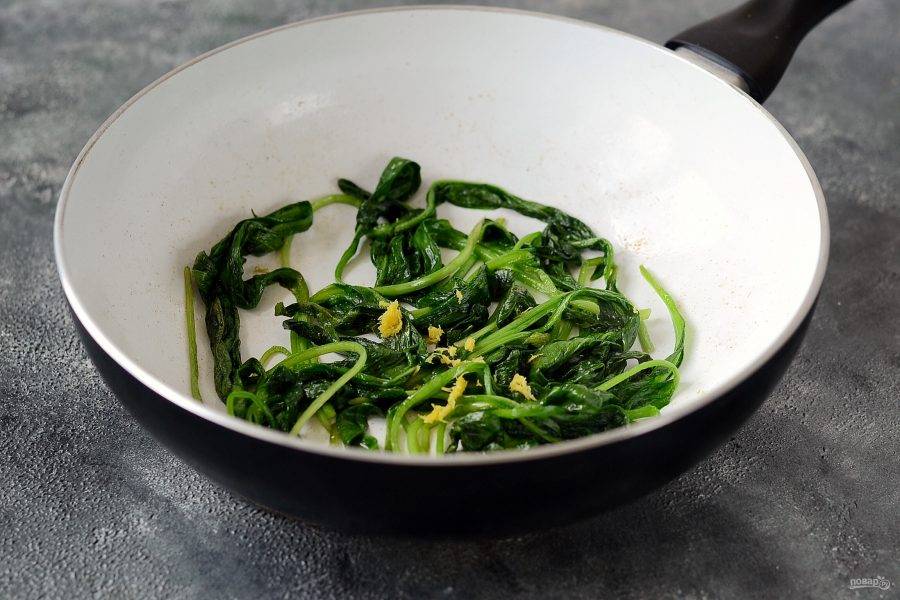 Сбрызните лимонным соком и посыпьте лимонной цедрой, жарьте еще 1-2 минуты.