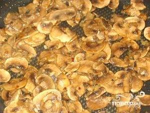 Обжариваем шампиньоны на отдельной сковороде в масле. Время готовки - 20 минут. Крышкой не накрываем.