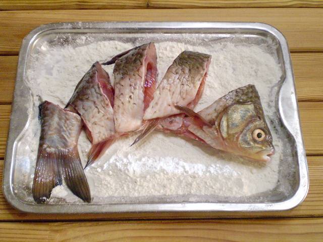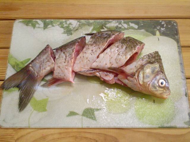 1. Овощи можно использовать как замороженные, так и свежие. Рыбу подготовить к жарке. Вынуть внутренности, жабры, снять чешую.