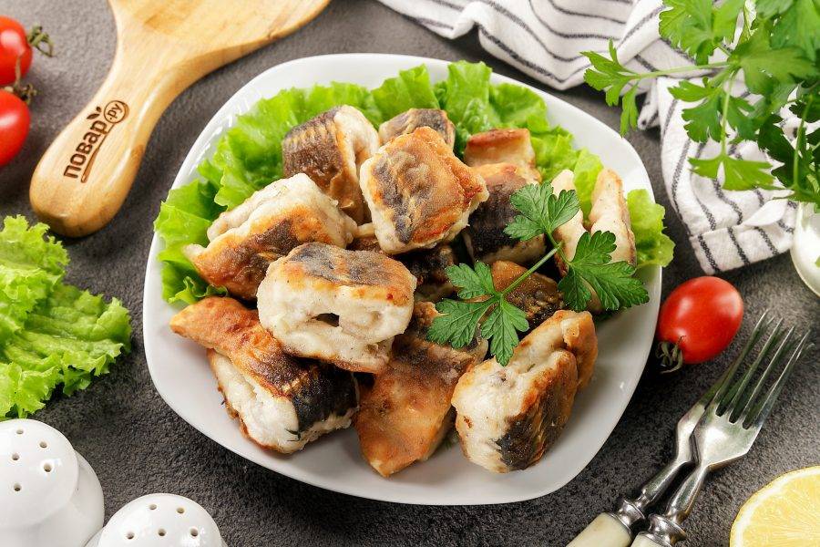 Жареная стерлядь готова. Подавайте сразу же. Приятного аппетита!