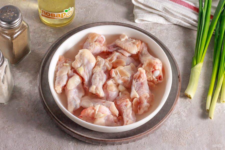 Промойте части крыла в воде, обсушите бумажными салфетками.