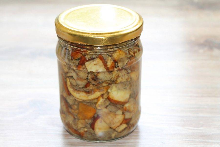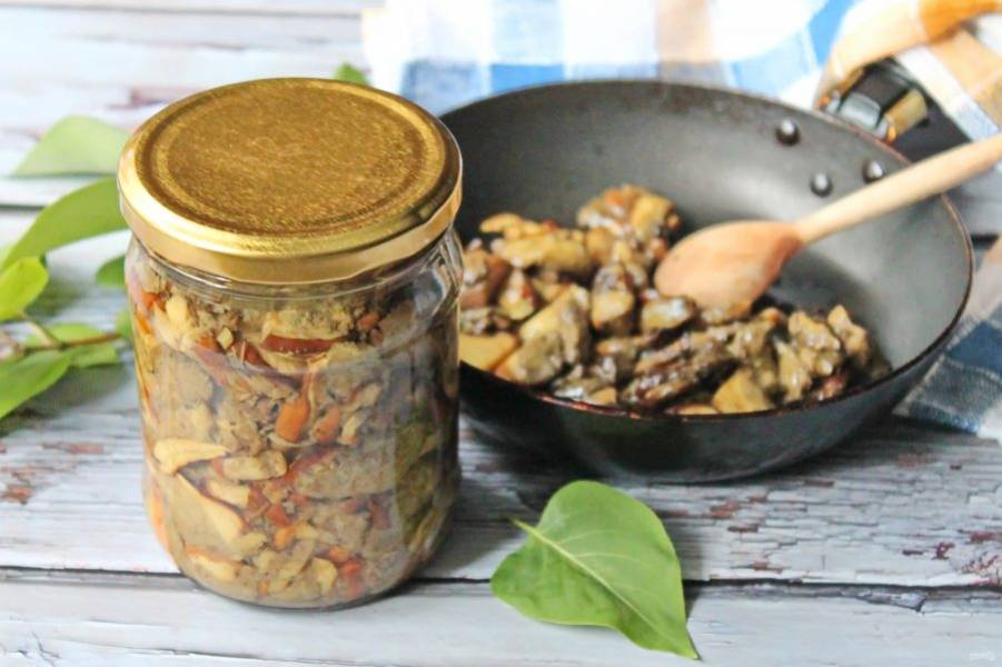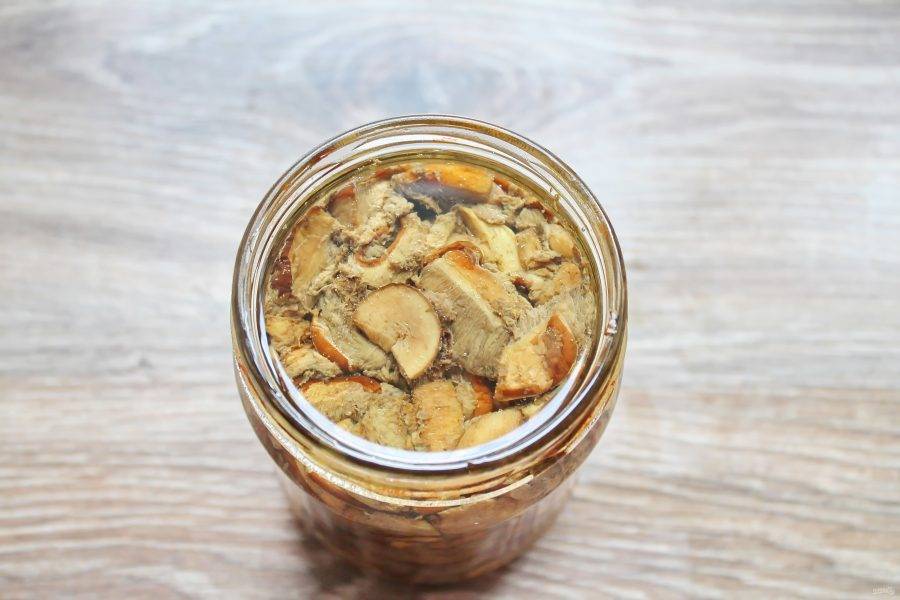 Снимите сковороду с огня, переложите в банки, чтобы не было пустот и залейте верх маслом, чтобы грибы были полностью покрыты.