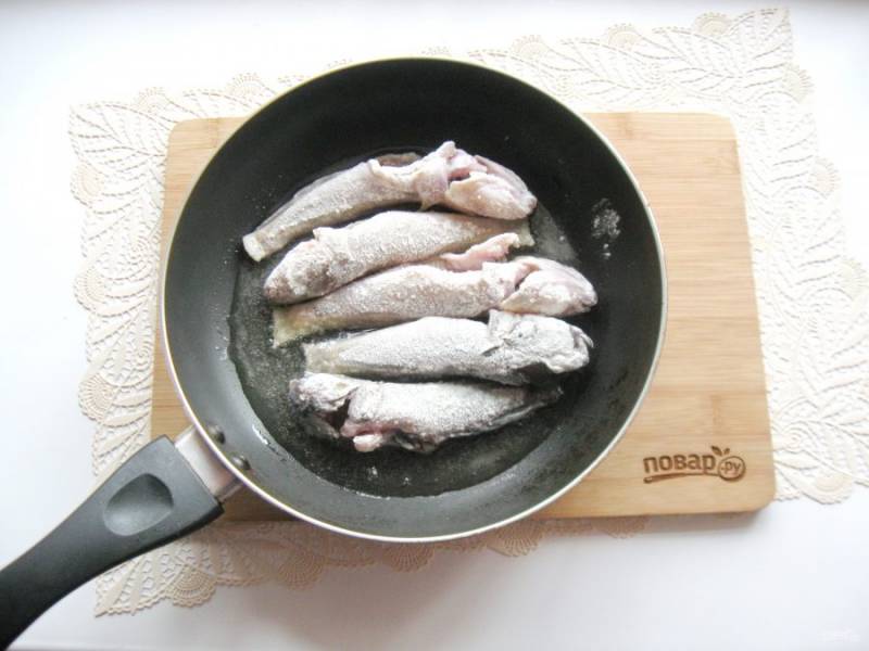 Обваляйте каждого бычка в муке.
