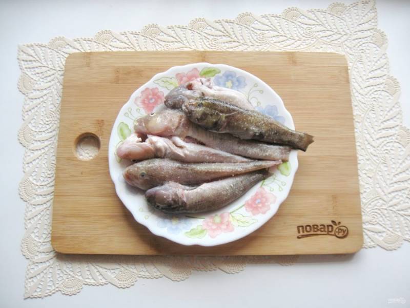 Бычки очистите от чешуи, выпотрошите, удалите жабры и промойте.