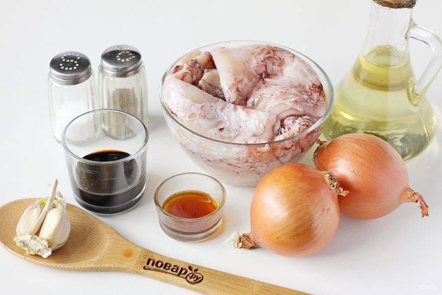 Жареные кальмары в соевом соусе