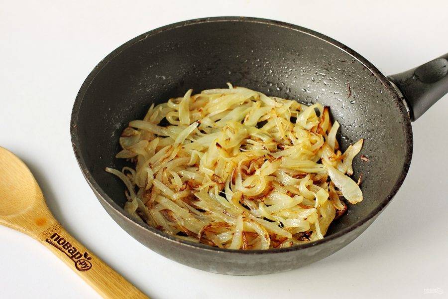 Обжарьте лук на растительном масле до золотистого цвета.