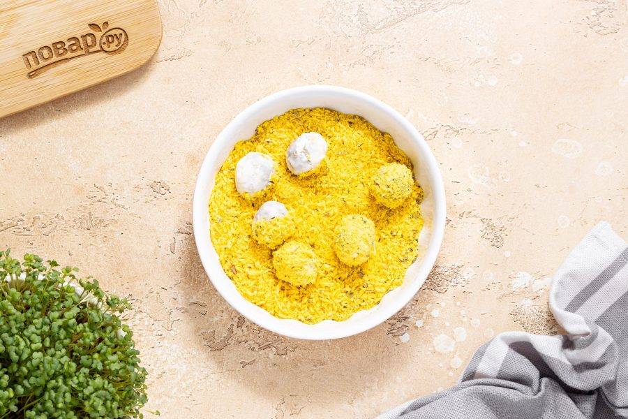 А после обваляйте в панировочных сухарях.