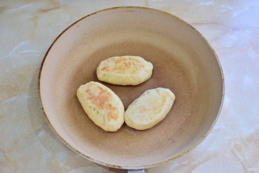 Жарьте пирожки с двух сторон. Постепенно они начнут румяниться.