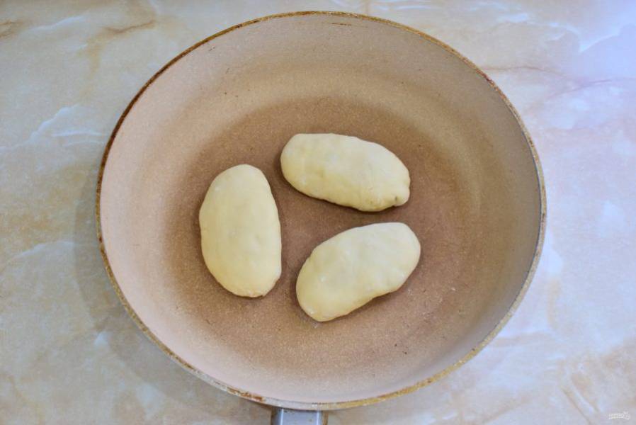 Жарьте пирожки в сухой сковороде. Большой огонь делать не надо, чтобы тесто не начало подгорать.