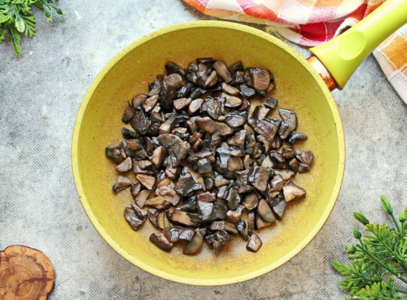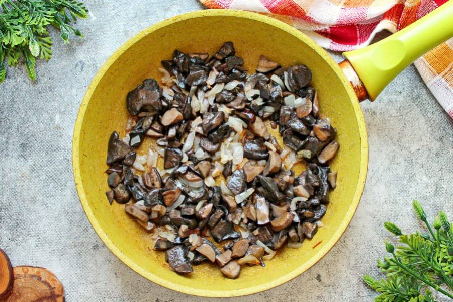 Обжаривайте на среднем огне, пока не выпарится жидкость, и грибы не обжарятся. Переложите их в тарелку.