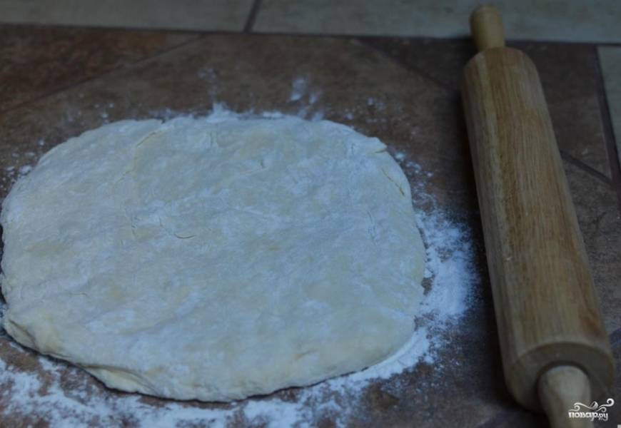 Затем скалкой раскатываем тесто.