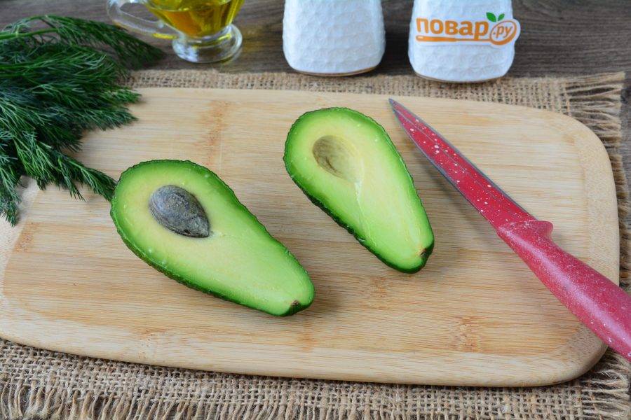 Разрежьте авокадо вдоль и пополам, извлеките косточку.