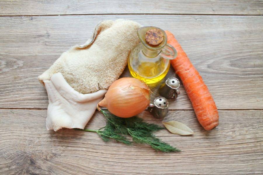 Рубец выложите в кастрюлю, залейте водой и доведите до кипения. Затем слейте бульон и промойте. Добавьте в кастрюлю зелень, перец горошком, лавровый лист, порезанные овощи и залейте водой, посолите. Доведите все до кипения и варите на среднем огне в течение 1,5-2 часа.