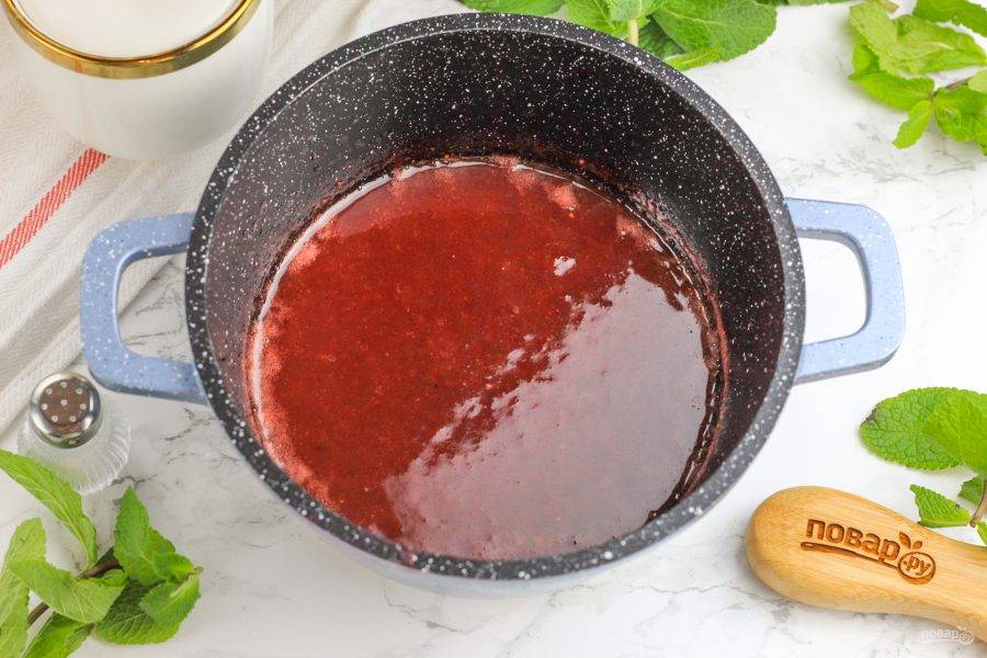 Протрите ягодную массу через ситечко, жмых удалите — его можно использовать для чая или морса.
