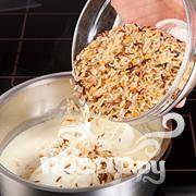 Довести кокосовое молоко до кипения. Приправить солью. Варить рис в молоке около 20 минут.