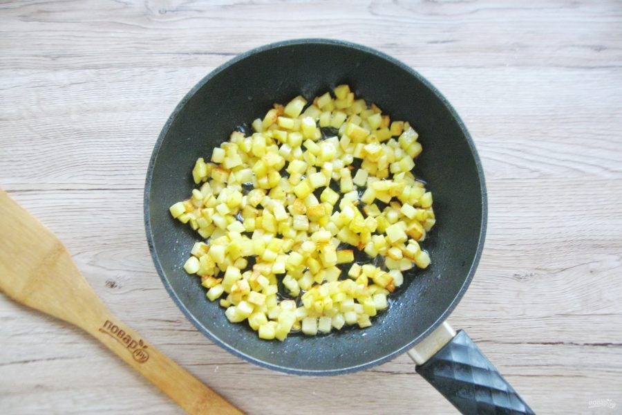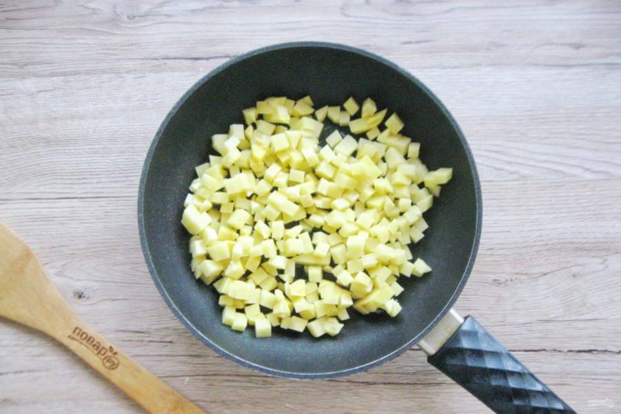 Картофель очистите, помойте и нарежьте небольшими кубиками.