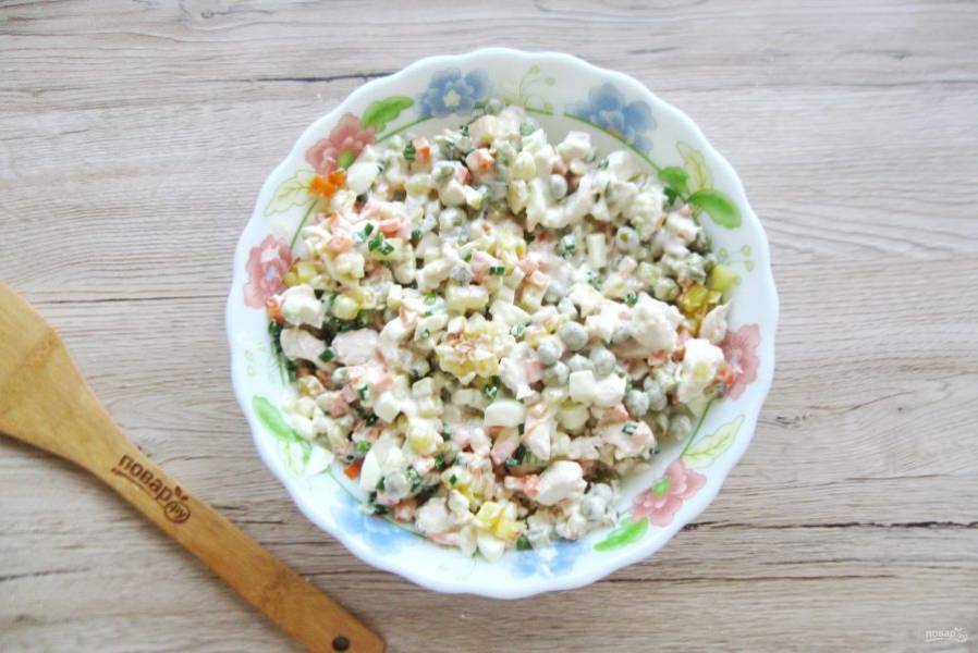 Салат жареный "Оливье" готов. Подавайте на закуску в будни и праздники.