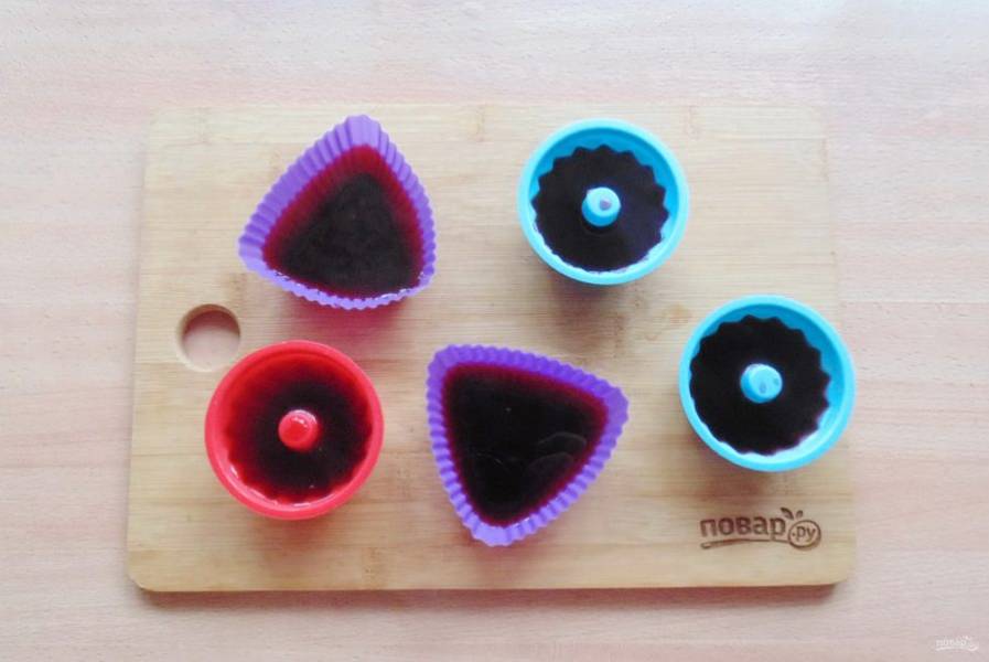 Затем отвар из жимолости с агар-агаром процедите и разлейте в формы.