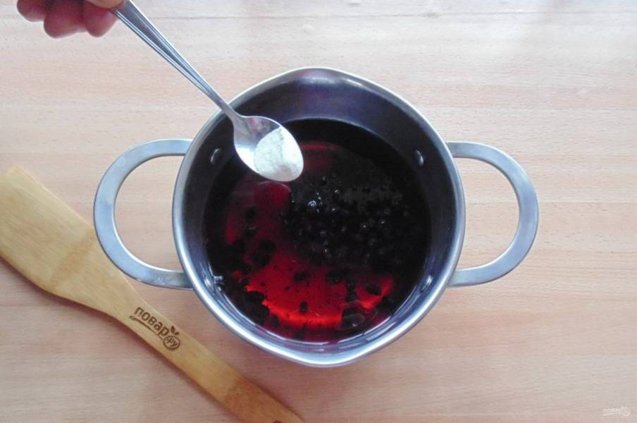 После ягодный отвар охладите до комнатной температуры и всыпьте в него агар-агар. Доведите до кипения и непрерывно помешивая варите жимолость 3-5 минут.