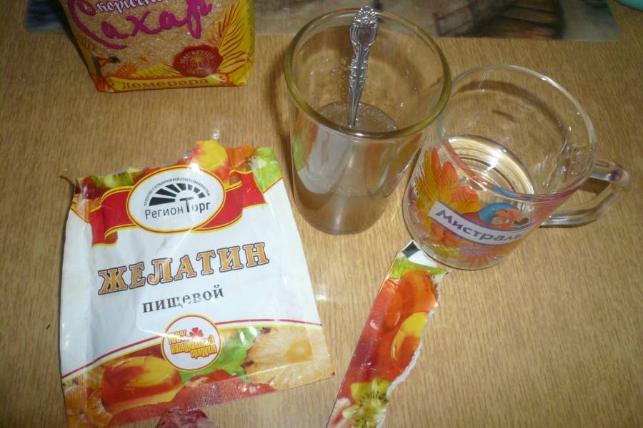 В 50 мл воды замачиваем 15 грамм желатина, оставляем до набухания на 30 минут