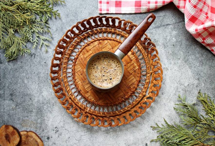 Чтобы приготовить желудевый кофе в турке, насыпьте одну чайную ложку кофе, добавьте сахар, влейте холодную, кипяченую воду и поставьте на средний огонь. Доведите все до кипения, снимите с огня и дайте настояться 5 минут.