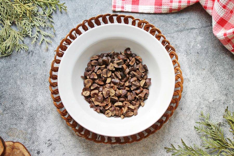 Очистите желуди от верхней оболочки. Отрежьте все темные пятна.