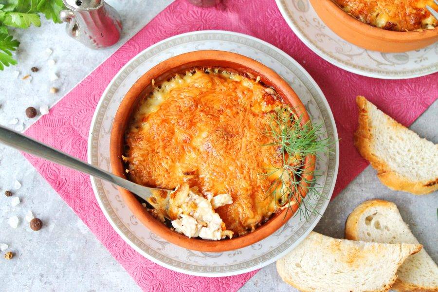Жульен с курицей и лисичками готов. Приятного аппетита!