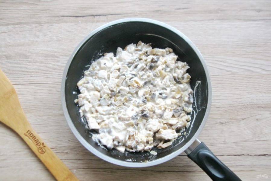 Добавьте к остальным ингредиентам сметану, посолите, поперчите.