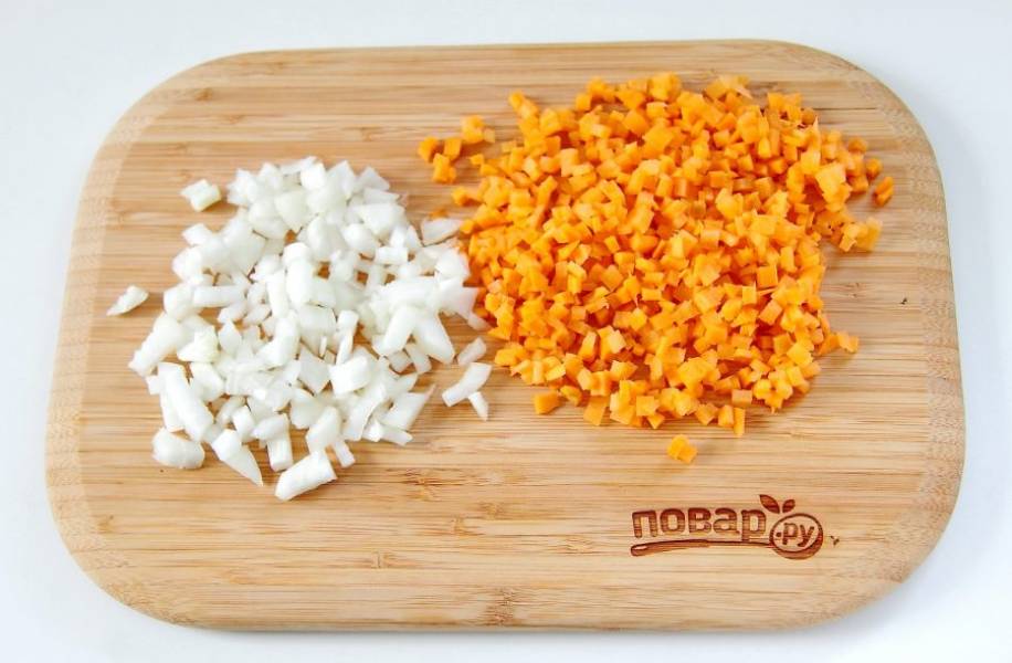 Часть вынутой из кабачков мякоти также нарежьте кубиками. Понадобится примерно половина.