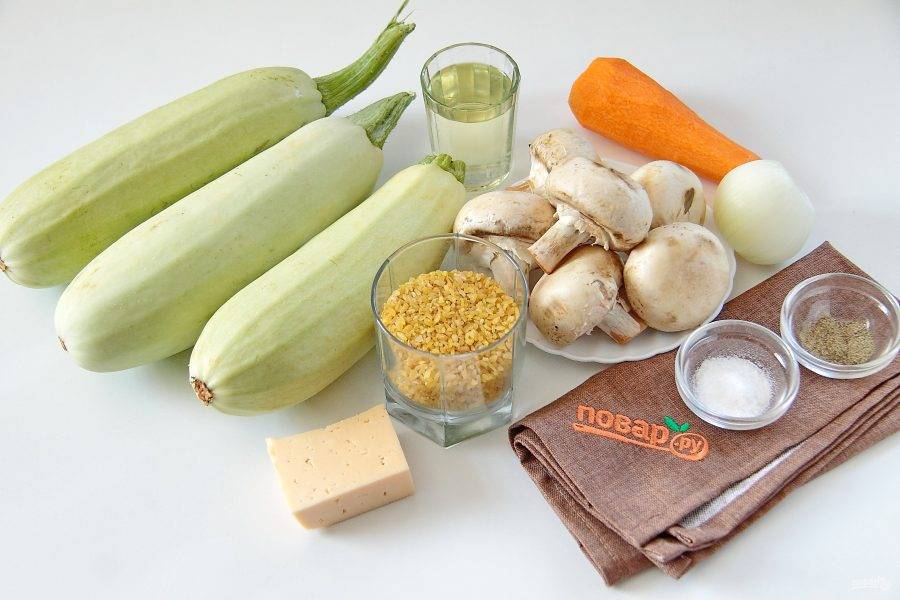Блюда из кабачков не только очень полезны, но и вкусны. Предлагаю в разгар сезона приготовить кабачки, фаршированные булгуром и грибами.