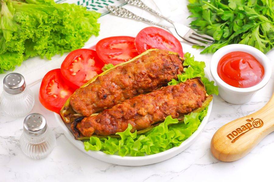 Аппетитные кабачки с фаршем получаются очень сочными и вкусными, ведь в фарш добавляется и чеснок. Такое блюдо отлично подойдет как для обеда, так и для ужина. Подавайте его с соусами, салатом.