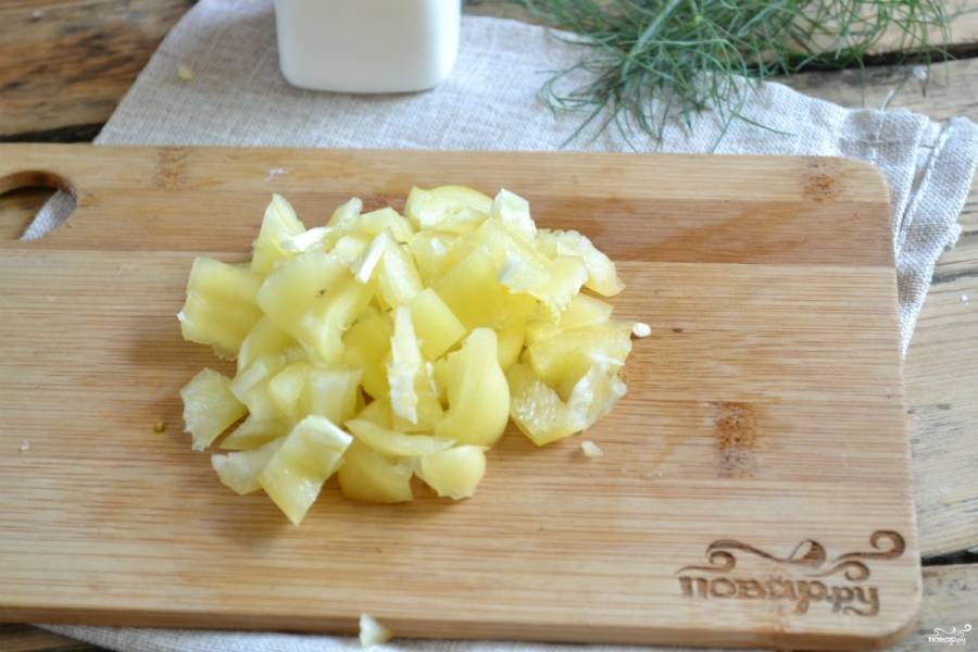 Сладкий перец порежьте так же, как кабачки.