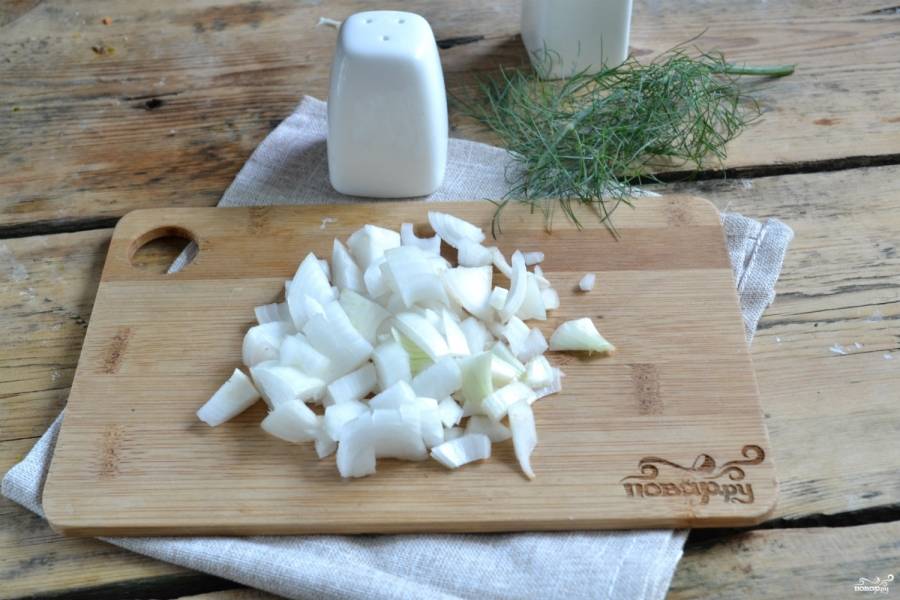Лук нарежьте мелкими кубиками.