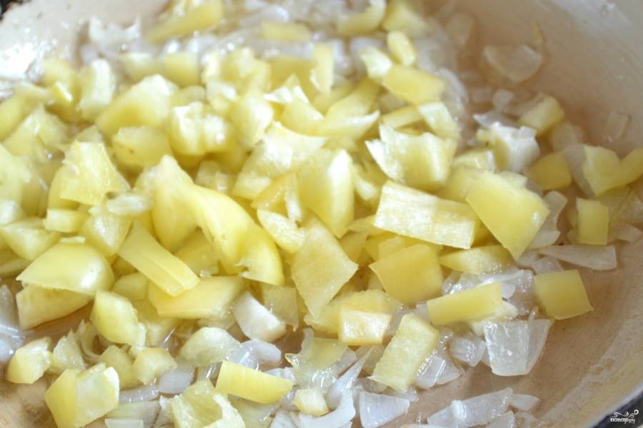 Следующим добавьте перец, поджарьте его несколько минут.