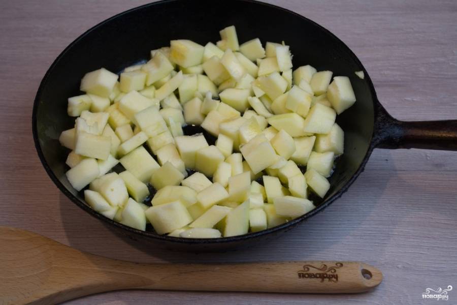 На растительном масле обжарьте кабачки до образования румяной корочки.