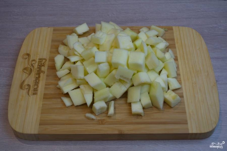 Для приготовления икры нам необходимо взять кабачки. Лучше всего использовать крупные, удалить шкурку и семена. Мякоть кабачка нарезать кубиками.