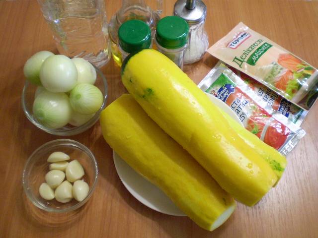 Кабачки порежьте на кусочки. Если семена внутри старые, их нужно вырезать.