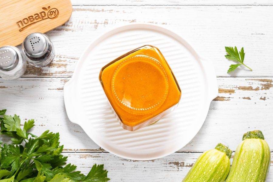 Горячую кабачковую икру переложите в чистую стерилизованную банку. Герметично закрутите крышку.