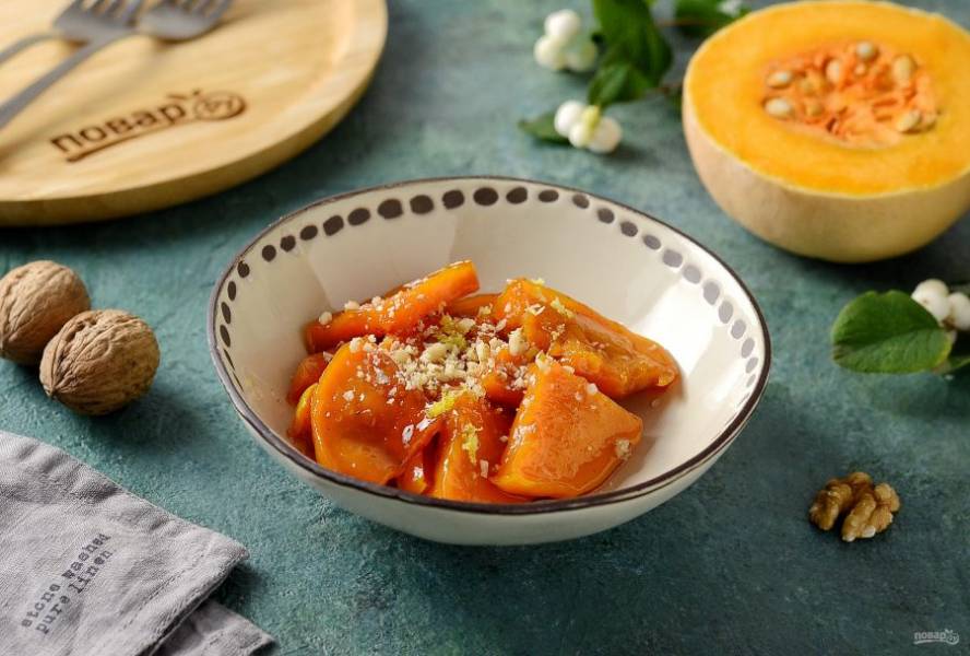 Перед подачей посыпьте тыкву измельченными грецкими орехами. Приятного вам аппетита!